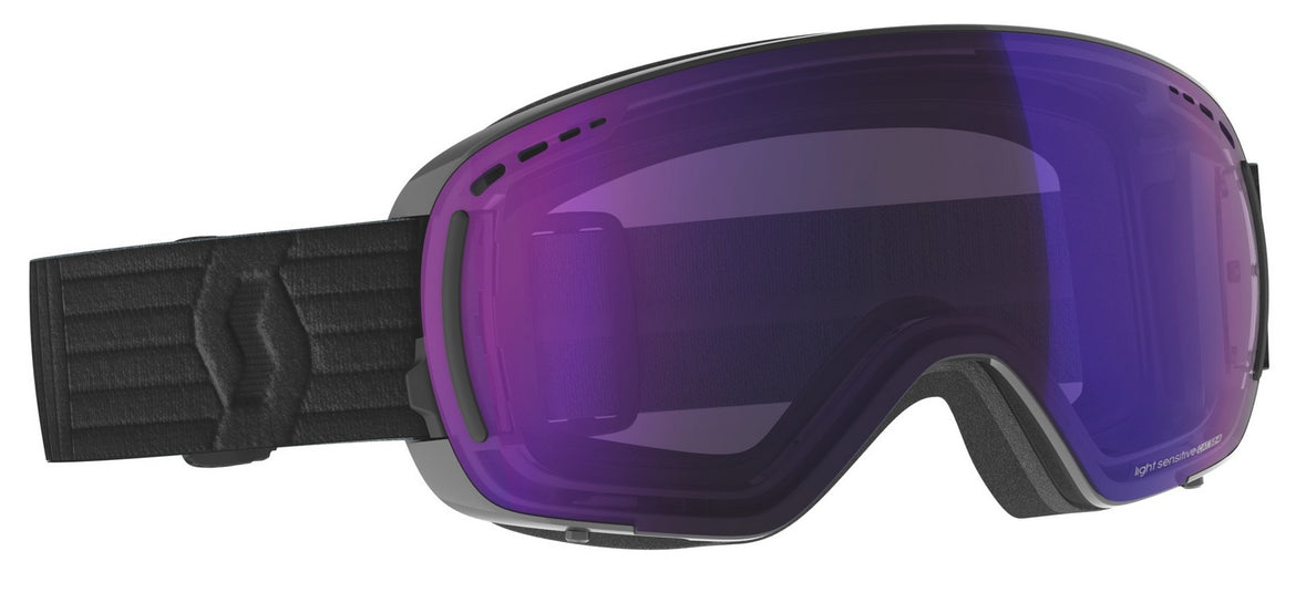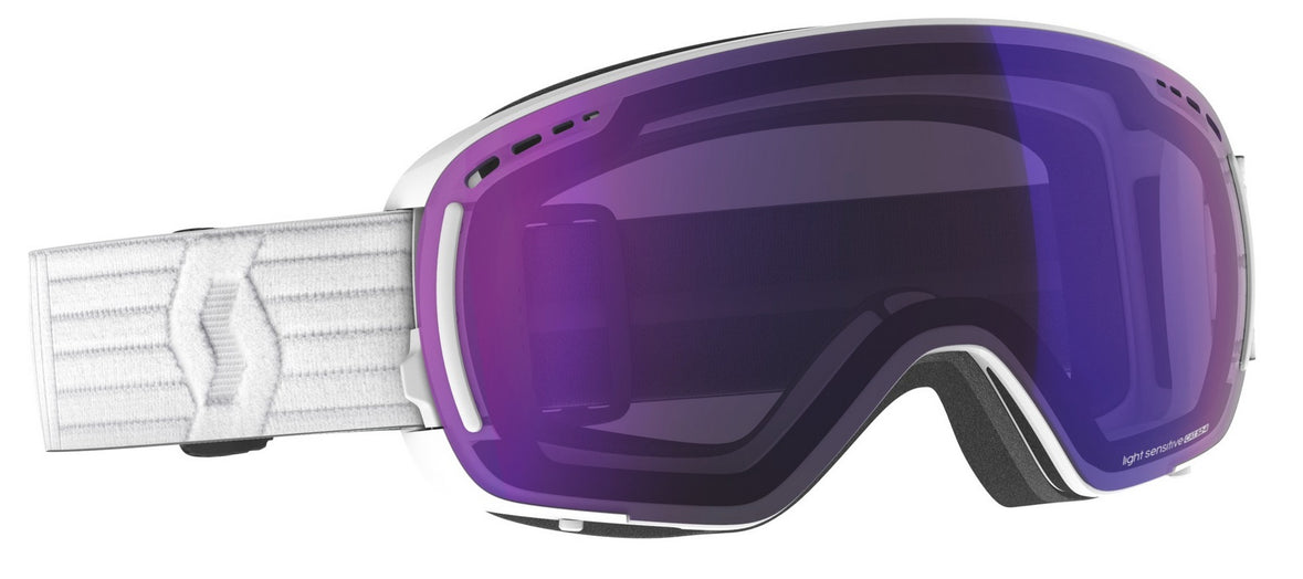 Scott Evo LCG goggle with Light Sensitive photochromic lens. One lens for most light conditions, and an extra lens for ultra flat light conditions. Change the lens with the flick of a lever. Light Sensitive lens can change your ski life!