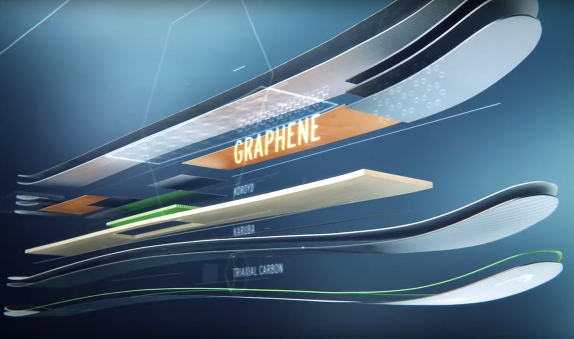 Kore is all about light weight without compromise.  Graphene is the lightest material known and incredibly strong.  Fused into the tip and tail, it offers outstanding stability and responsiveness.  Koroyd honeycomb replaces wood core material in the center of the ski.  This reduces weight, without sacrificing stability.  Karuba wood cores are very lively and super light weight.  This gives the ski its rebound from turn to turn, and a feather light feel underfoot.  All three of these materials are unique to the Head ski brand.