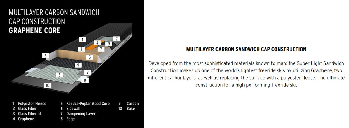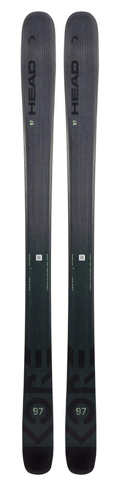 Head Kore 97W is all new for 2022. Even lighter, and yet still amazing performance on the snow. 2 full layers of carbon, combined with a Karuba/Poplar full wood core. Very few ski at this price point contain anything close to this much carbon fiber inside. Graphene fused tips and tails reduce and redistribute the ski's weight giving the ski a very light feel from turn to turn, and allows the ski to be thinner on the ends. This thinner profile enhances flotation in soft snow, and maximizes maneuverability as the ski moves side to side, slicing easier through the snow. Ladies models have specific/different widths than the unisex Kore models.