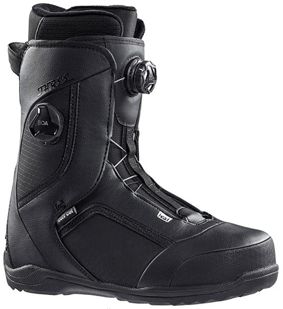 The Three Lyt Boa Focus is a comfortable, easy-to-ride boot with a medium flex and subtle forward lean. The Perfect Fit liner has an incredibly adaptive fit, with no pinch points, while the two BOA® dials create independently adjustable zones for a custom fit with variable forefoot and upper pressure. The Cuff Cut construction offers comfort and a snug fit without bulging out and the Treadlyt outsole adds lightness and grip in all conditions.